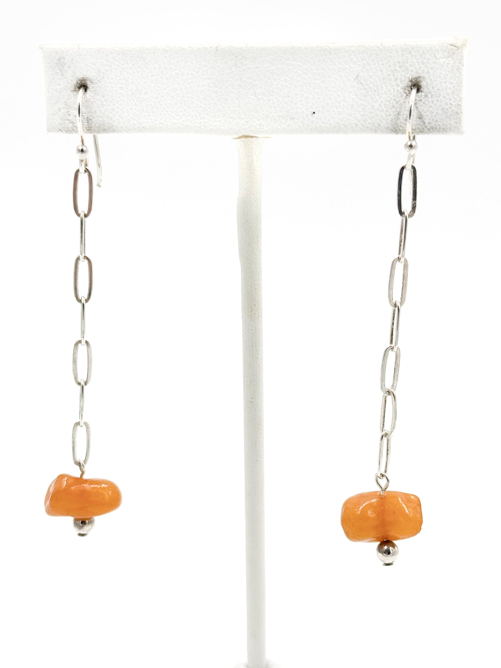 Experience the natural beauty of amber with our sterling-silver paper-clip chain earrings. Each piece of Baltic amber is carefully handpicked and set on a 3" chain, providing a subtle and elegant look. A perfect addition to any jewelry collection, these earrings are sure to make a statement. Stones are ½"x¼"